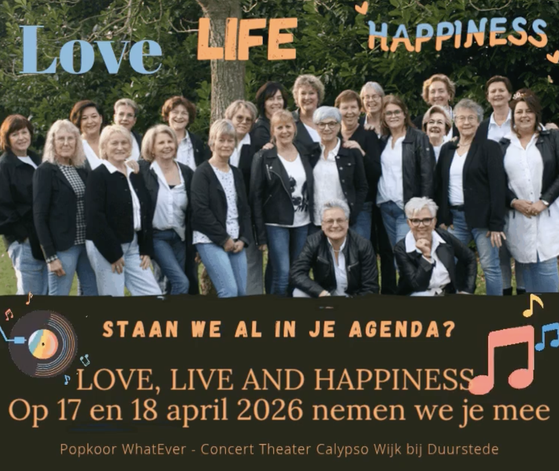 Op dit moment zijn wij aan het oefenen voor ons volgend concert op 17 en april 2026. We zingen 2 avonden in het Calypso Theater in Wijk bij Duurstede ter ere van ons 10-jarig bestaan. En zie hier de onthulling van ons thema.